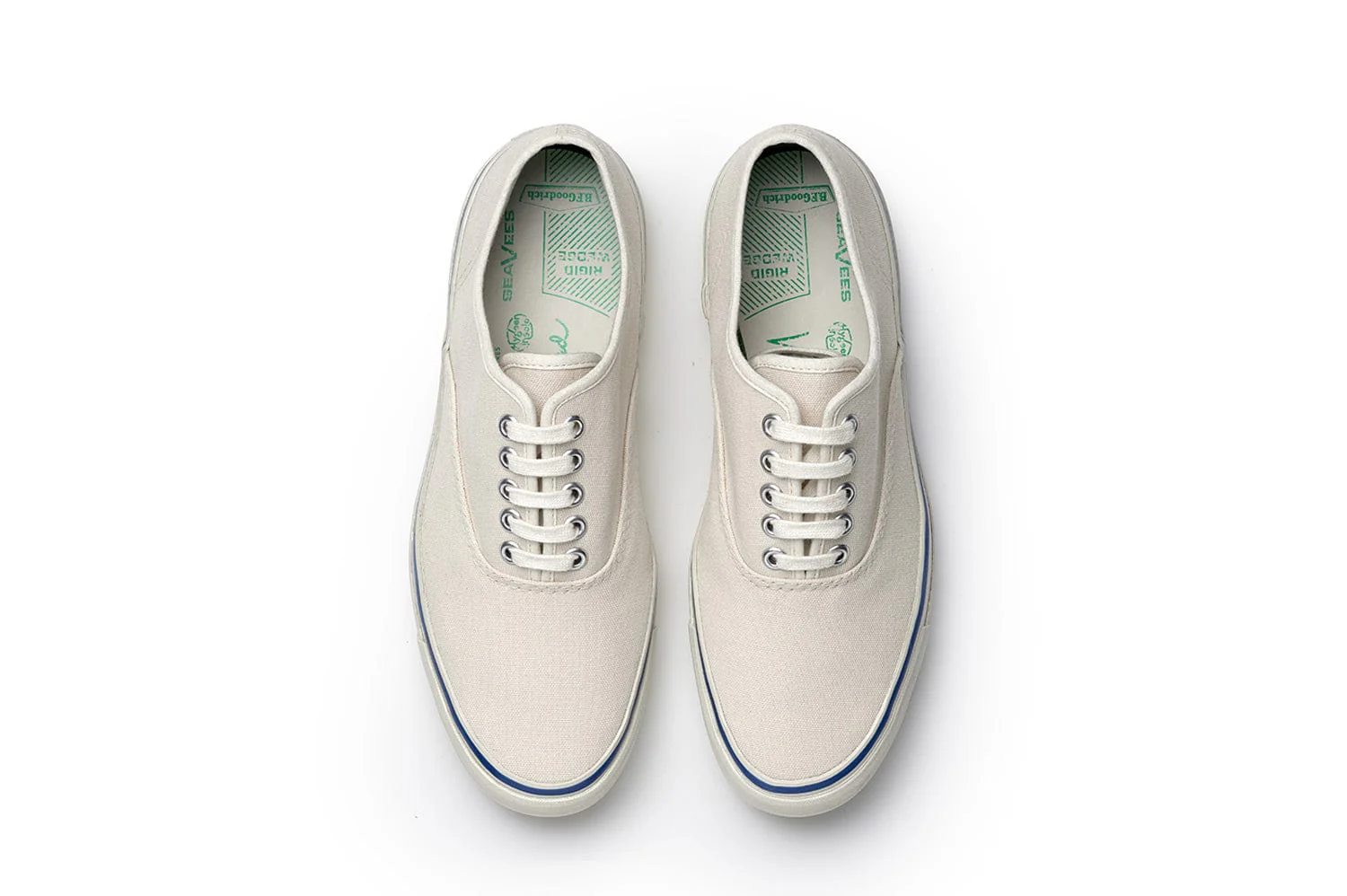 For the first time in 60 years, SeaVees and its original owner (B.F. Goodrich) have reunited on a stitch for stitch revival of our inaugural Yacht Shoe. All materials, components, and manufacturing methods have been carefully selected to be period correct. The only exception was our use of recycled tire rubber, a recent advancement that did not exist in the '60s. In doing so, this limited issue style honors our past while reflecting our present values of turning something old into something new to last another lifetime.